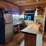 An equipped kitchenette is provided at Cabana Familiar Apartment Self-catering facilities also include a mini fridge bar.